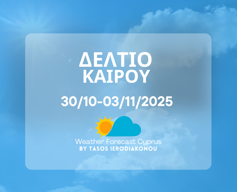 Σάββατο 1 Νοεμβρίου μέγιστες στο εσωτερικό μεταξύ 27-30 βαθμούς και στα παράλια στους 26-28 βαθμούς. Στα ορεινά μεταξύ 18-24 βαθμούς. Θερμοκρασίες λίγο πάνω από τις κανονικές. Βορειοδυτικός-Νοτιοδυτικός άνεμος 2 έως 4 μποφόρ. Ηλιοφάνεια με περάσματα νεφώσεων από μέση προς ανώτερη ατμόσφαιρα κατά περιόδους πιο αυξημένες σε ανώτερη ατμόσφαιρα.