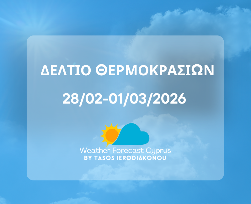 Μέγιστες θερμοκρασίες σε πολύ μικρή άνοδο και θα είναι στο εσωτερικό μεταξύ 14-16 βαθμούς, παράκτιες-παράλιες περιοχές μεταξύ 14-16 βαθμούς και στα ορεινά μεταξύ 2-8 βαθμούς αναλόγως υψομέτρου και πάνω στον Όλυμπο από μηδέν έως μείον 2 βαθμούς. Θερμοκρασίες κάτω της κανονικής.