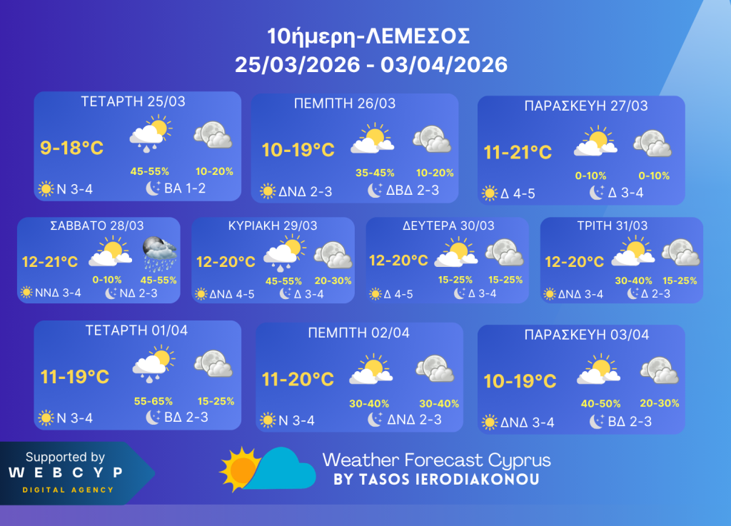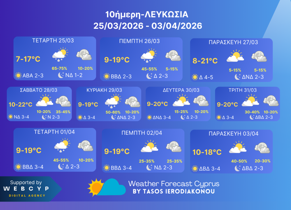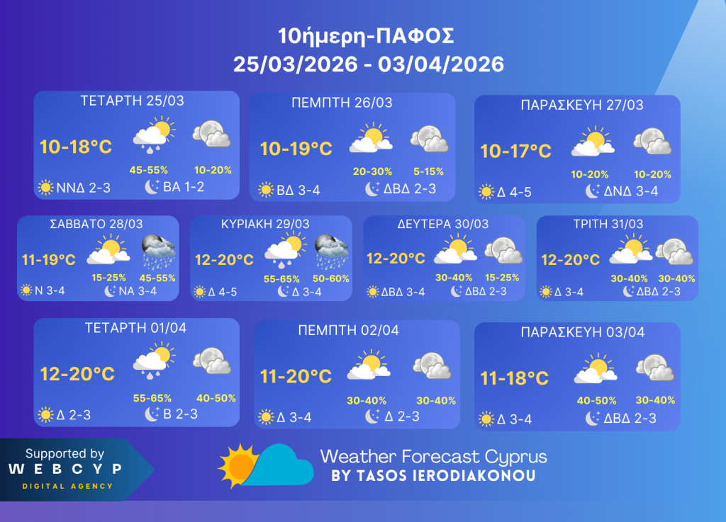 10ήμερη Καιρική Πρόβλεψη 25 Μαρτίου-3 Απριλίου 2026!!!