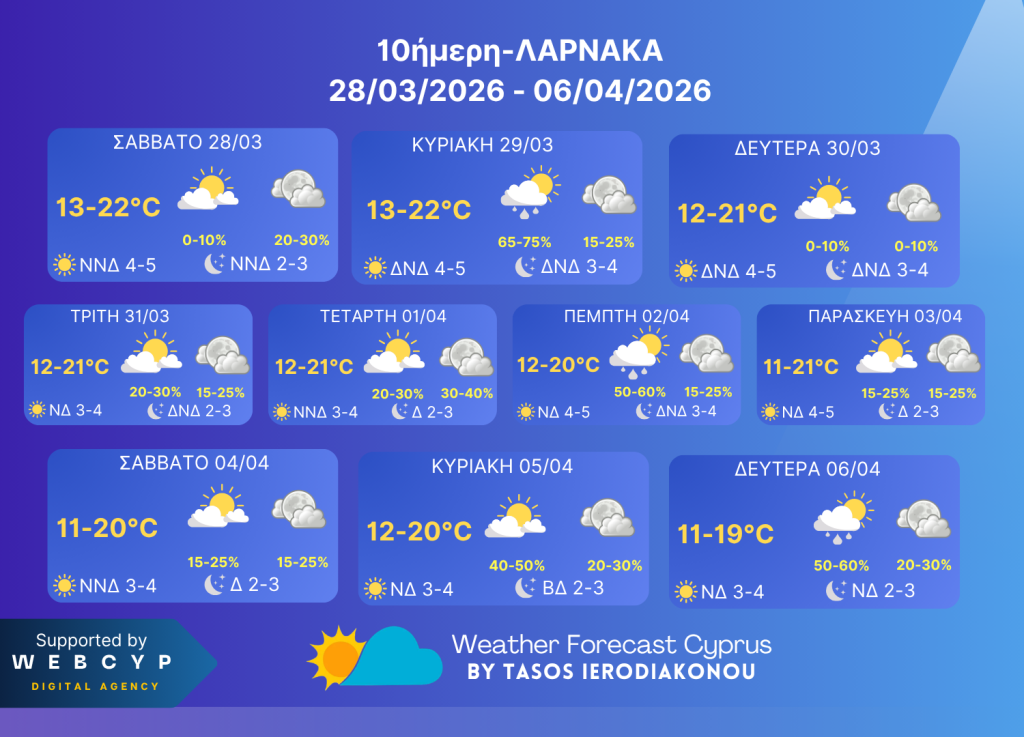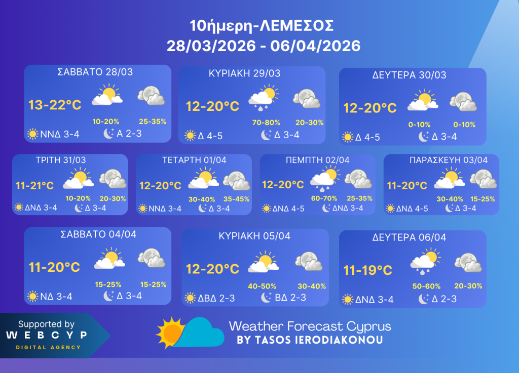Παρασκευή και Σάββατο 27-28 Μαρτίου πιθανότητα να περάσει σκόνη από την ατμόσφαιρα της περιοχή μας ερχόμενη από Αφρική για αυτό και αργά το βράδυ Σαββάτου προς Κυριακή αναμένονται σκονοβροχές.