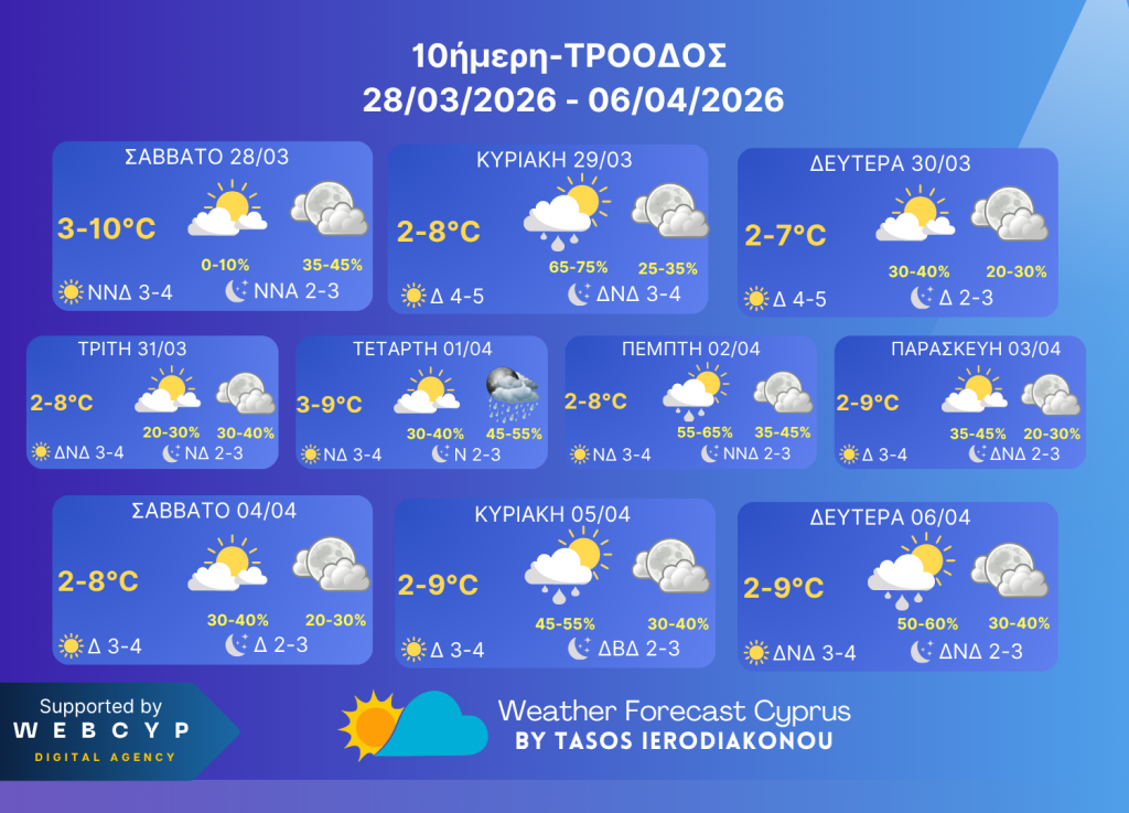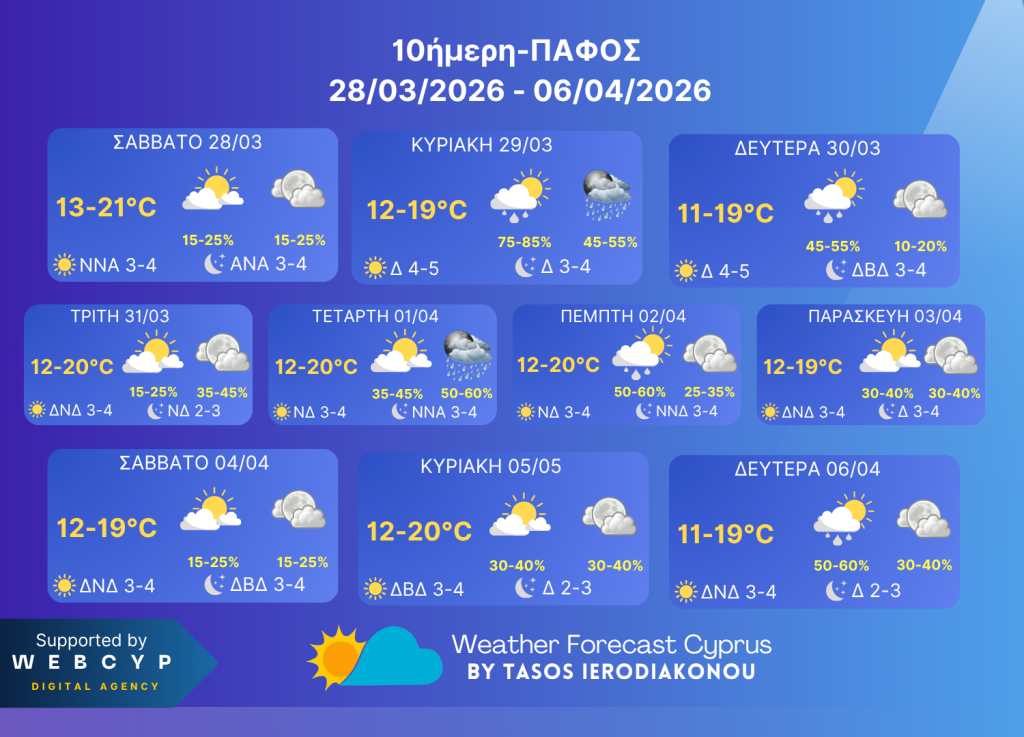 Κυριακή 29 Μαρτίου οι βροχές είναι πρωινές προς μεσημεριανές ώρες και ακολουθεί σημαντική βελτίωση.